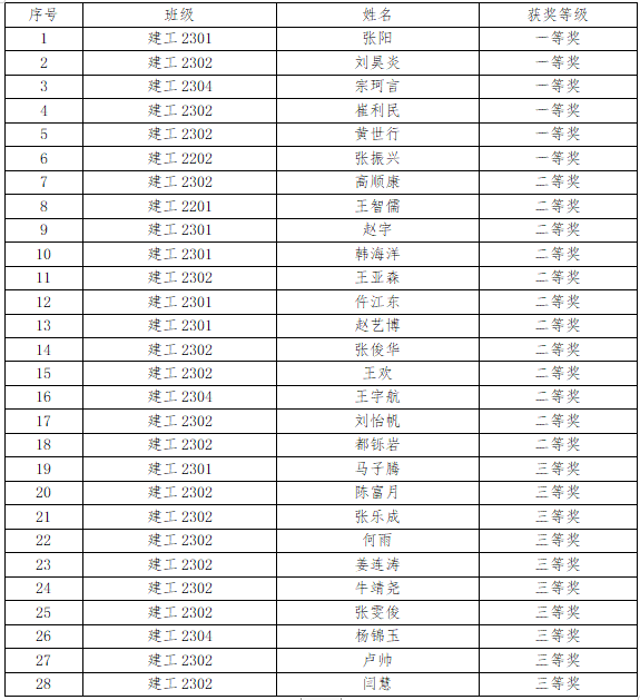 本次竞赛经过层层筛选、选拨,最终张阳等28名同学分别获得一、二、三等奖。通过本次竞赛,助力学生及时跟踪建筑产业数字化、工业化发展,提高专业人才培养质量,提高学生综合应用能力,锻炼学生精益求精的工匠精神。