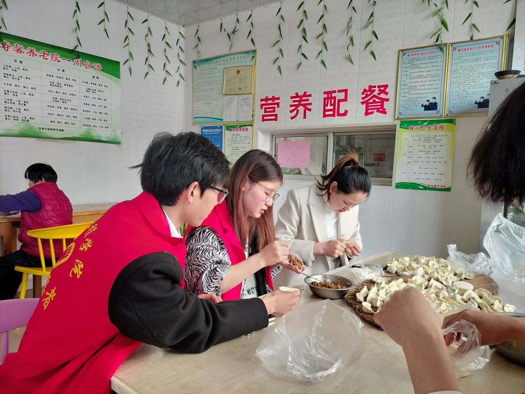 上午9时,志愿者们按时到达康寿馨养老院,和工作人员简单接洽后,开始了忙碌的志愿服务活动。活动中志愿者们为老人们居住的房间进行了大扫除,他们发扬不怕苦、不怕累的精神,帮助老人擦玻璃窗、清洁桌椅、收拾房间等。在帮助老人的同时和他们交谈,志愿者们认真聆听老人讲述个人经历,并将自己在学校读书以及家乡的情况与老人们进行分享,人群中时不时爆发出爽朗的笑声,整个养老院里萦绕着爱的暖流,场面温馨感人。随后在院内工作人员的带领下,志愿者们为老人们包饺子,看着老人们开心地吃着自己亲手包的水饺,志愿者们真正感受到了雷锋精神的具象化内涵,也更加坚定了志愿服务的初心。