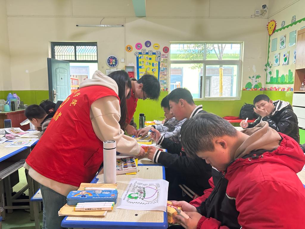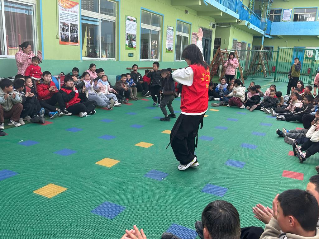 志愿者们到达后,在老师们的带领下进入各个班级,教小朋友们读诗词、学写字、唱儿歌。他们幽默诙谐的语言、富有感染力的笑容、无微不至的关心,让小朋友们对志愿者从陌生到熟悉、从胆怯到友好,孩子们天真无邪的笑容让人倍感温暖。随后,孩子们和志愿者集中到中心的空地内,开展了一场别开生面的节目联谊。志愿者们表演的街舞瞬间点燃全场热情,孩子们在欢乐的气氛感染下也为志愿者带来了他们的舞蹈、诗词背诵、大合唱等节目。现场欢声笑语不断,大家都沉浸在一片欢乐的海洋中。