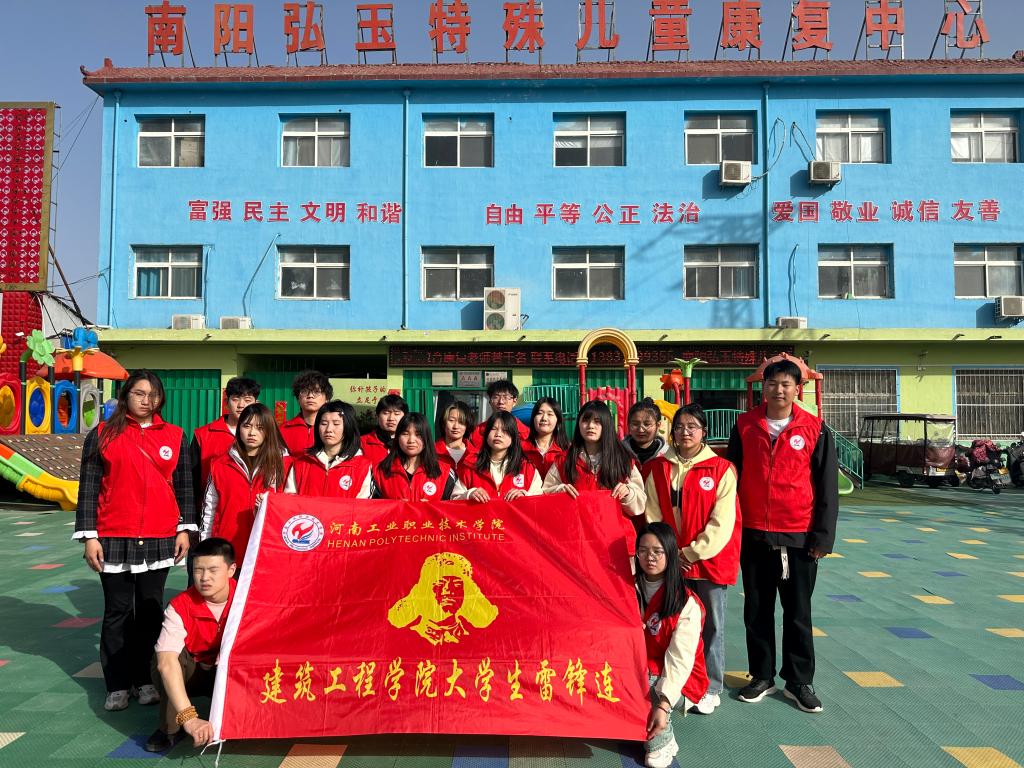 为推动学院学雷锋志愿服务常态化、多样化,促进广大青少年健康成长,延续温暖力量。3月19日下午,建筑工程学院雷锋连组织志愿者到南阳市弘玉特殊儿童康复中心开展志愿活动。
