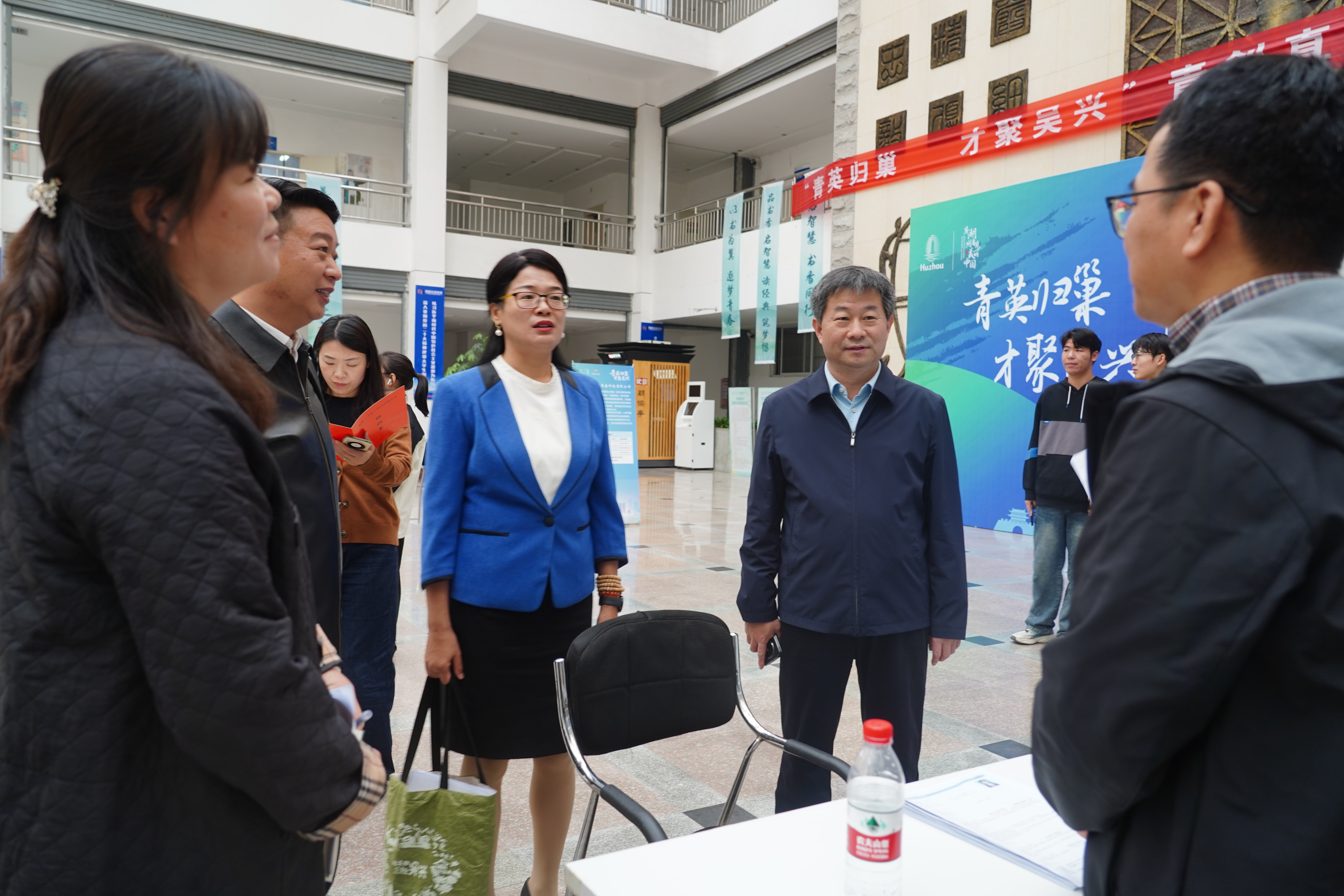 10月16日上午,浙江省湖州市吴兴区政协副主席郑峻、区政协提案委主任赵永需、区人力社保局党组成员林永吉、区人力社保局劳动人事争议仲裁院副院长涂静文携当地9家企业到校召开专场招聘会,洽谈人才合作事宜。学校党委副书记马小兵出席会议,招生就业处、产教融合发展中心、科技外事处、机械工程学院、自动化工程学院、经济贸易学院、文化旅游与国际教育学院、汽车与航空工程学院等相关人员参加会议。