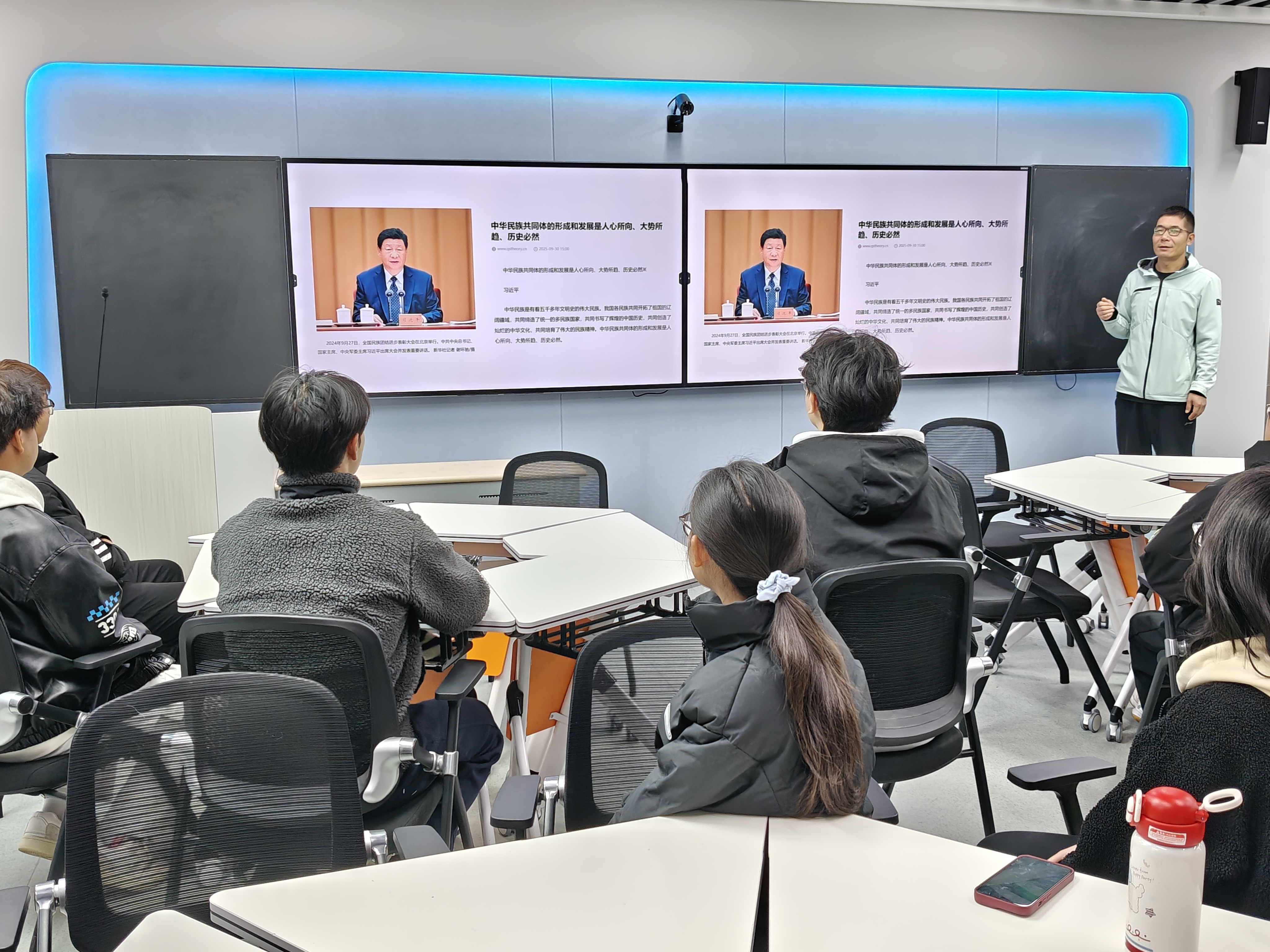活动伊始,学生第一党支部书记王旭领学了习近平总书记在庆祝中华人民共和国成立76周年招待会上的重要讲话精神,以及《求是》杂志发表的习近平总书记重要文章《中华民族共同体的形成和发展是人心所向、大势所趋、历史必然》相关内容。
