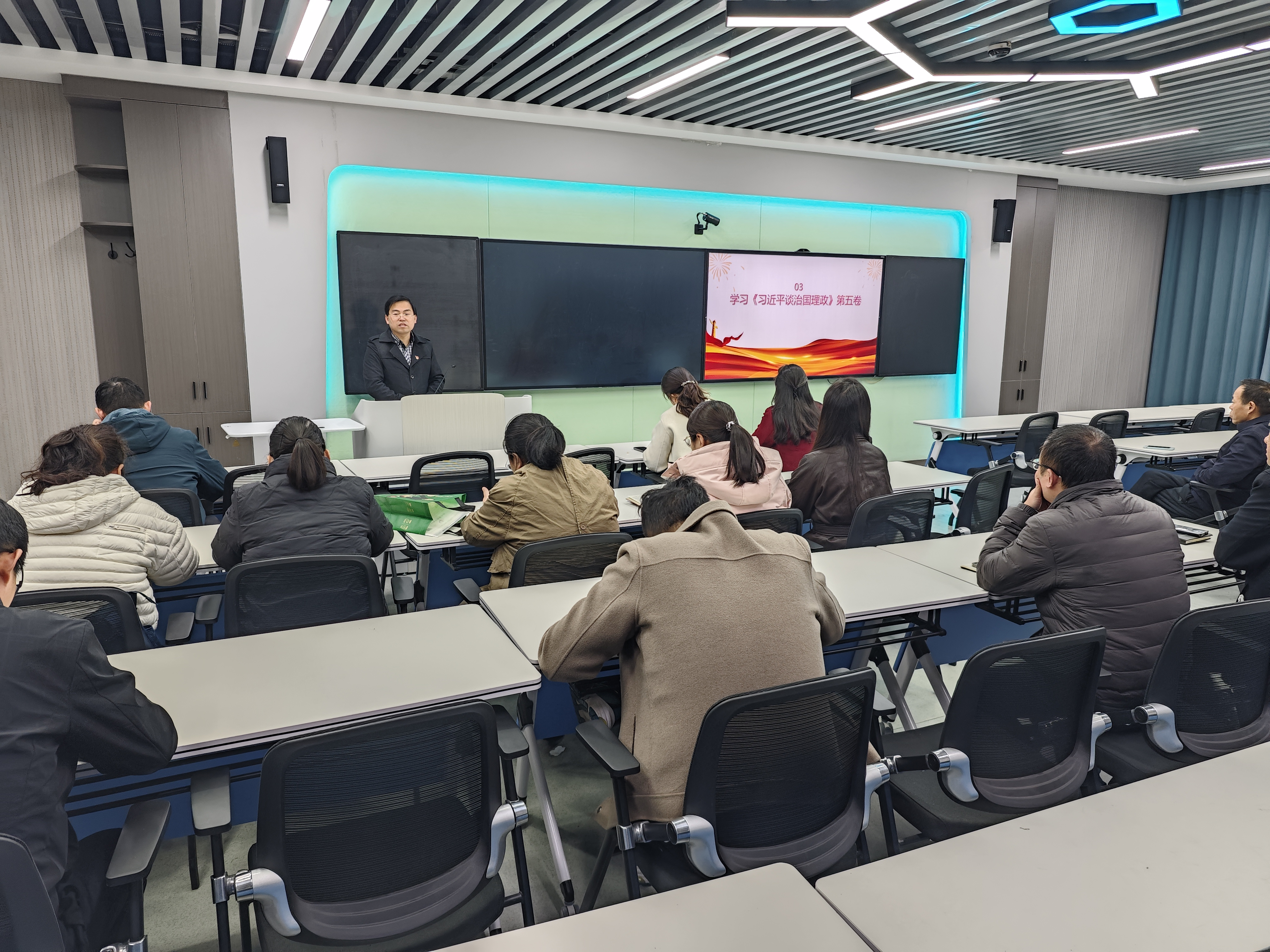 最后,王旭做出以下几点倡议:第一,坚定理想信念,做追求真理的“先行者”,筑牢信仰之基;第二,练就过硬本领,做勤学笃行的“排头兵”,勤于学习钻研;第三,发挥模范作用,做引领风尚的“示范员”,带头遵规守纪。