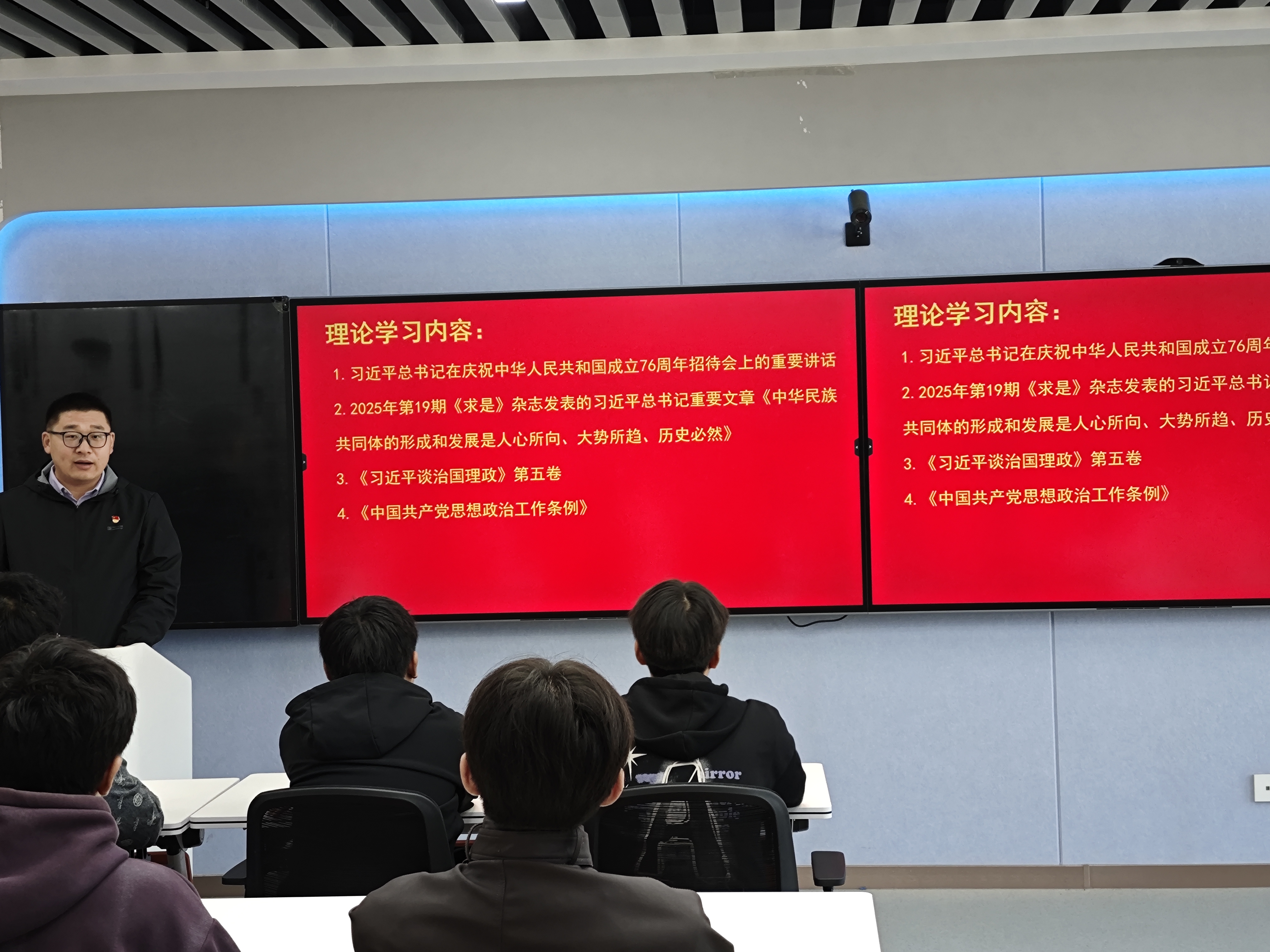 活动伊始,支部组织党员集中学习了习近平总书记在庆祝中华人民共和国成立76周年招待会上的重要讲话精神和2025年第19期《求是》杂志发表的习近平总书记重要文章《中华民族共同体的形成和发展是人心所向、大势所趋、历史必然》《习近平谈治国理政》第五卷和《中国共产党思想政治工作条例》。