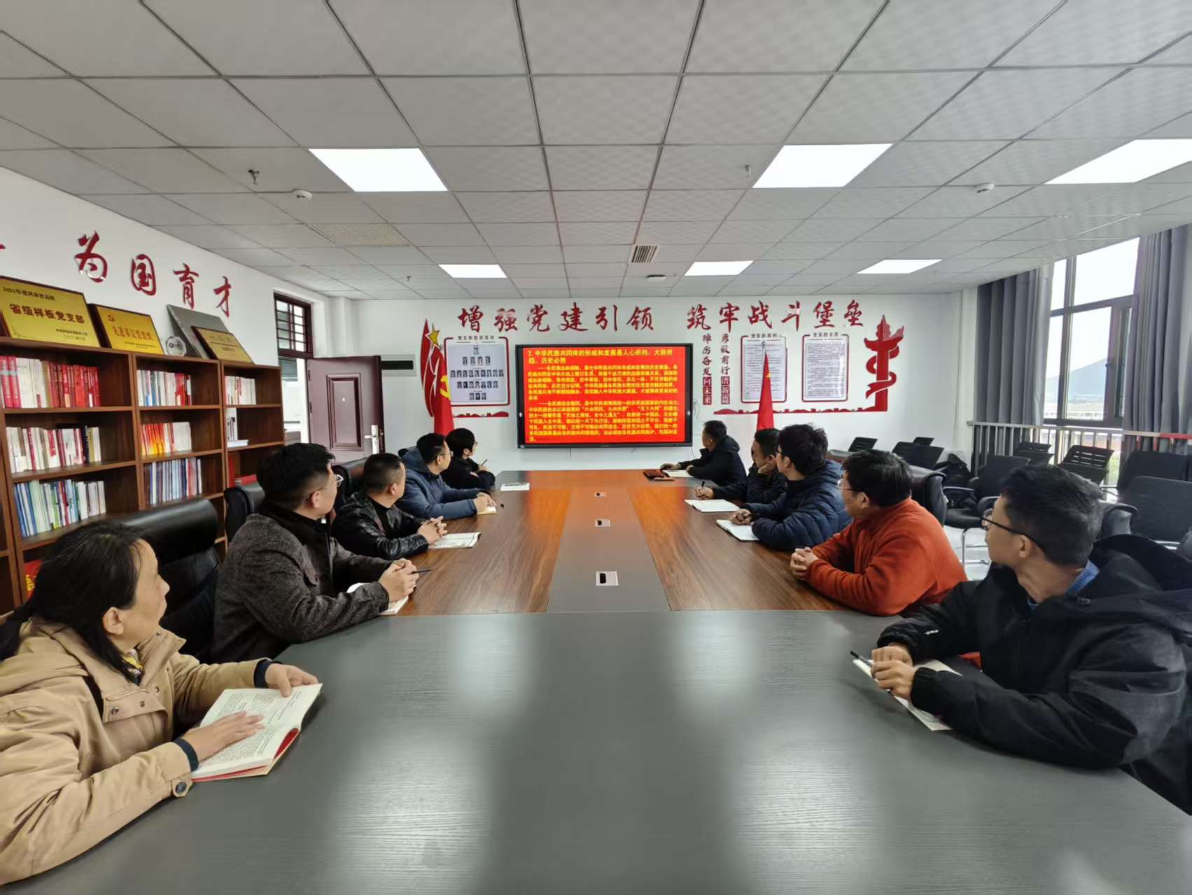 本次活动核心学习内容包括习近平总书记在庆祝中华人民共和国成立76周年招待会上的重要讲话、习近平总书记重要文章《中华民族共同体的形成和发展是人心所向、大势所趋、历史必然》《习近平谈治国理政》第五卷及《中国共产党思想政治工作条例》。活动中,通过回顾国家成就,明确中国式现代化方向,强化中华民族共同体意识,引导党员增强“四个意识”“四个自信”“两个维护”,为支部工作提供思想与行动指南。在活动的最后环节,组织观看纪录片《长征》,广大党员深刻认识到长征精神在国家发展成就中的赓续传承,延安精神等伟大精神皆蕴含着长征精神的基因。