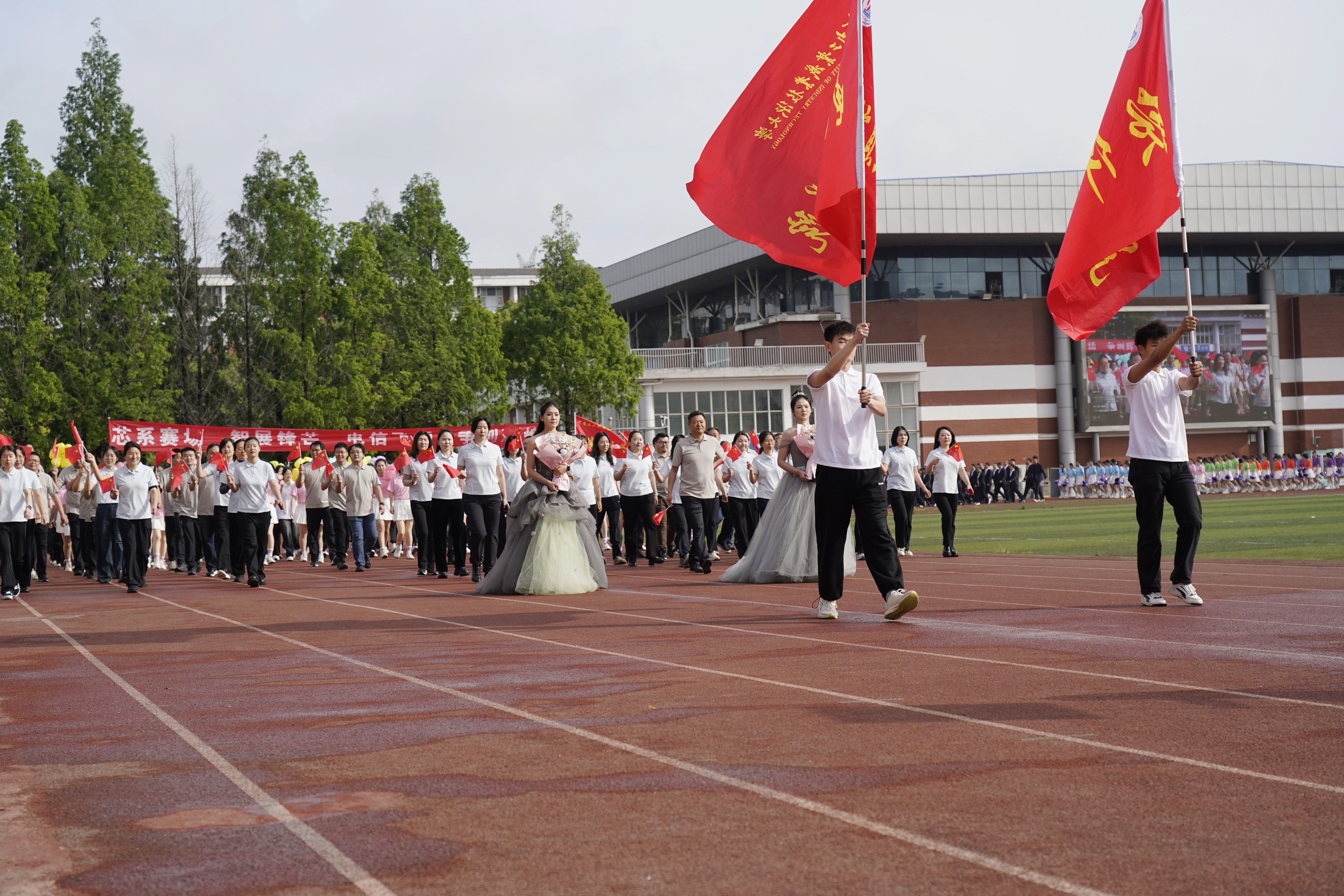 上午8点20分,伴随着慷慨激昂的运动员进行曲,仪仗队、军乐队、运动员以及全校各学院(中心)、各职能部门组成的12个代表团,迈着整齐有力的步伐,高喊嘹亮的口号,精神抖擞地走过主席台。各方队结合专业特色与青春创意,以丰富多样的形式诠释体育精神与集体风采,充分展现了学校师生奋发向上、锐意进取的精神风貌。