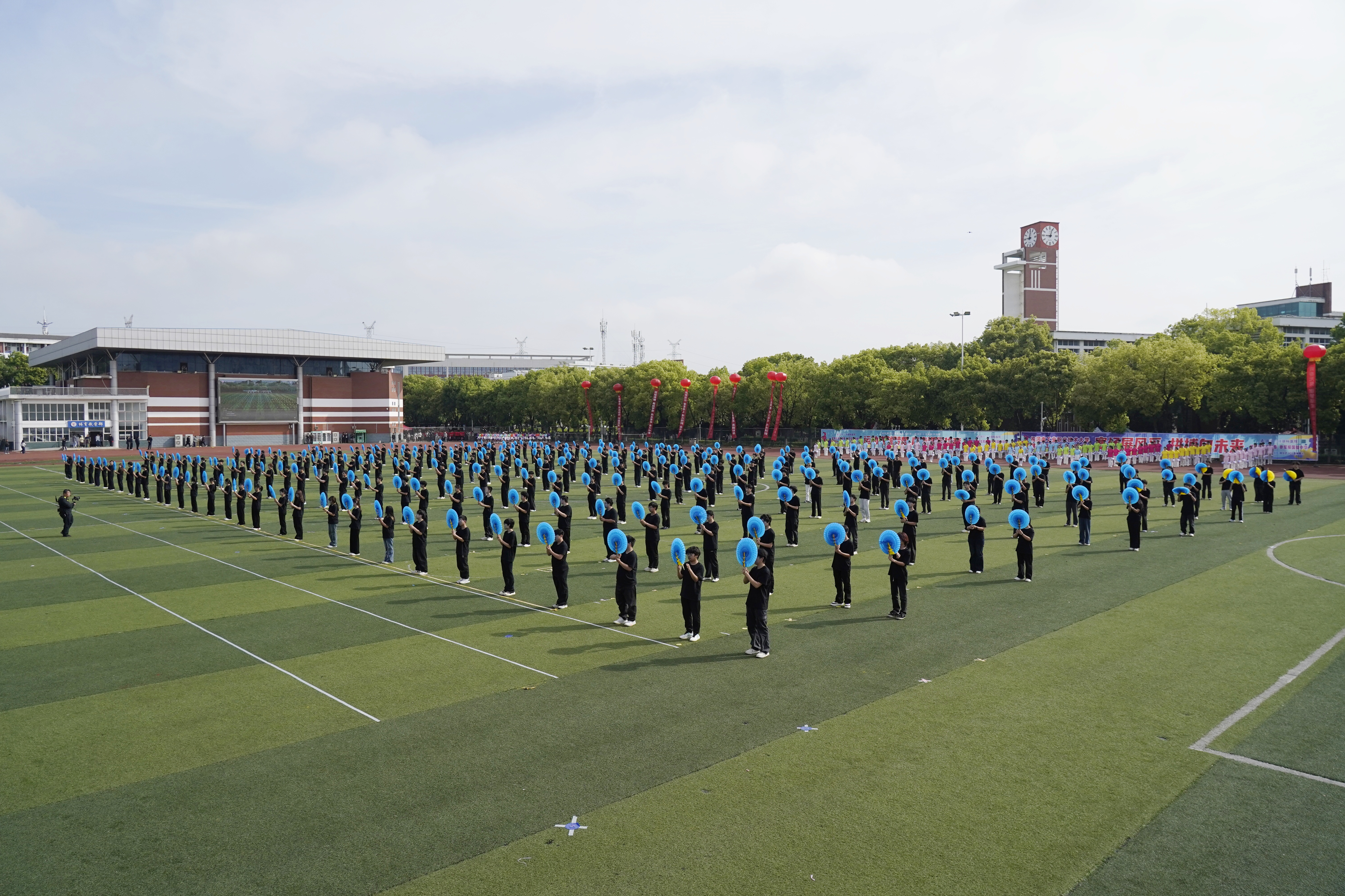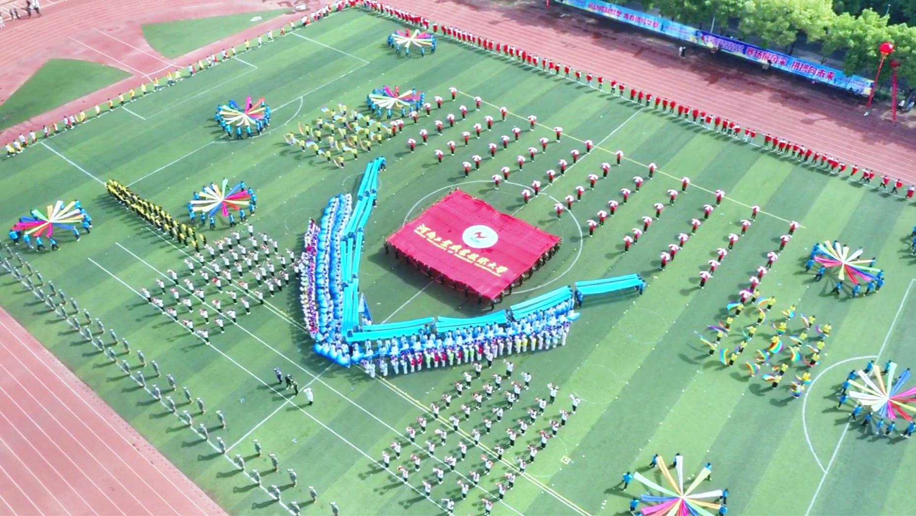开幕式上,千余名学子以绿茵为卷、以青春作笔,手持彩扇、花伞与彩带,在队形流转间绘就“大国工匠”的铮铮誓言,回溯建校初心的历史坐标,致敬升格职业技术大学的崭新征程。扇影翻飞如电路奔涌,伞花旋转似青春绽放,流动的彩虹汇聚成同心圆,每一次起落都是奋进的节拍,每一声呐喊都是时代的回响。从匠心方阵的严谨默契,到大地经纬的青春律动;从奔跑而来的活力新程,到海潮奔涌的昂扬姿态——每一个节目都凝聚着对工匠精神的坚守、对军工血脉的传承、对未来的无限憧憬。尾声时刻,数百名学子汇成磅礴阵列,步伐整齐划一,气势排山倒海,将整场表演推向最高潮。这是青春与信仰的同频共振,是匠心与梦想的壮丽交响,更是全校师生向建党105周年、向学校奋进新征程献上的最炽热礼赞!